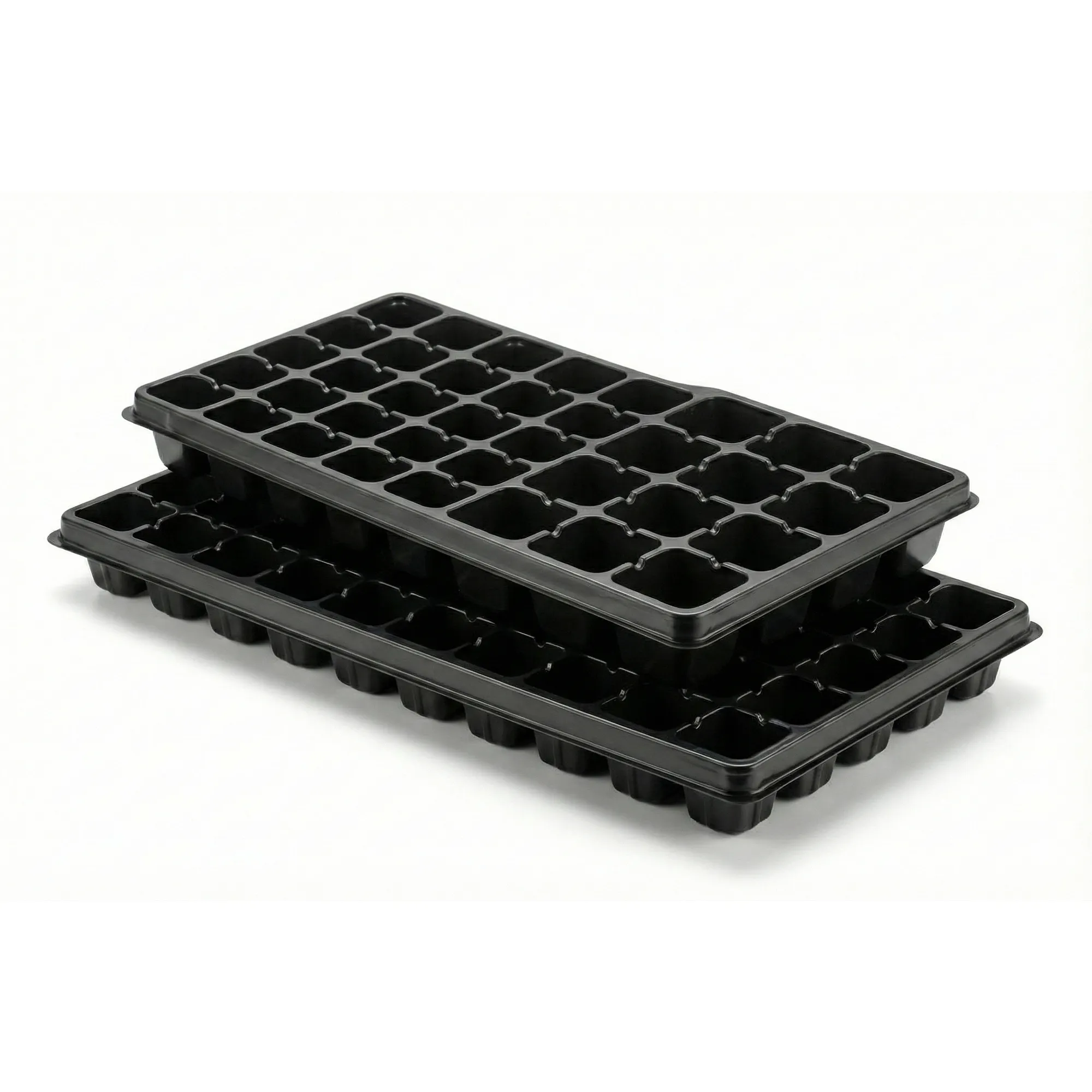 Durable plastic seedling trays available in 72‑cell and 105‑cell options, designed for strong root development, easy handling and quick transplanting in nurseries and home gardens.